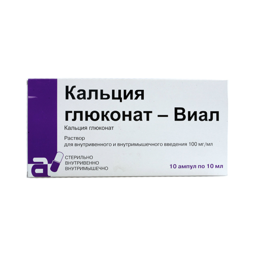 Кальция глюконат-Виал раствор для внутривенного и внутримышечного введения 100мг/мл ампулы 10мл №10