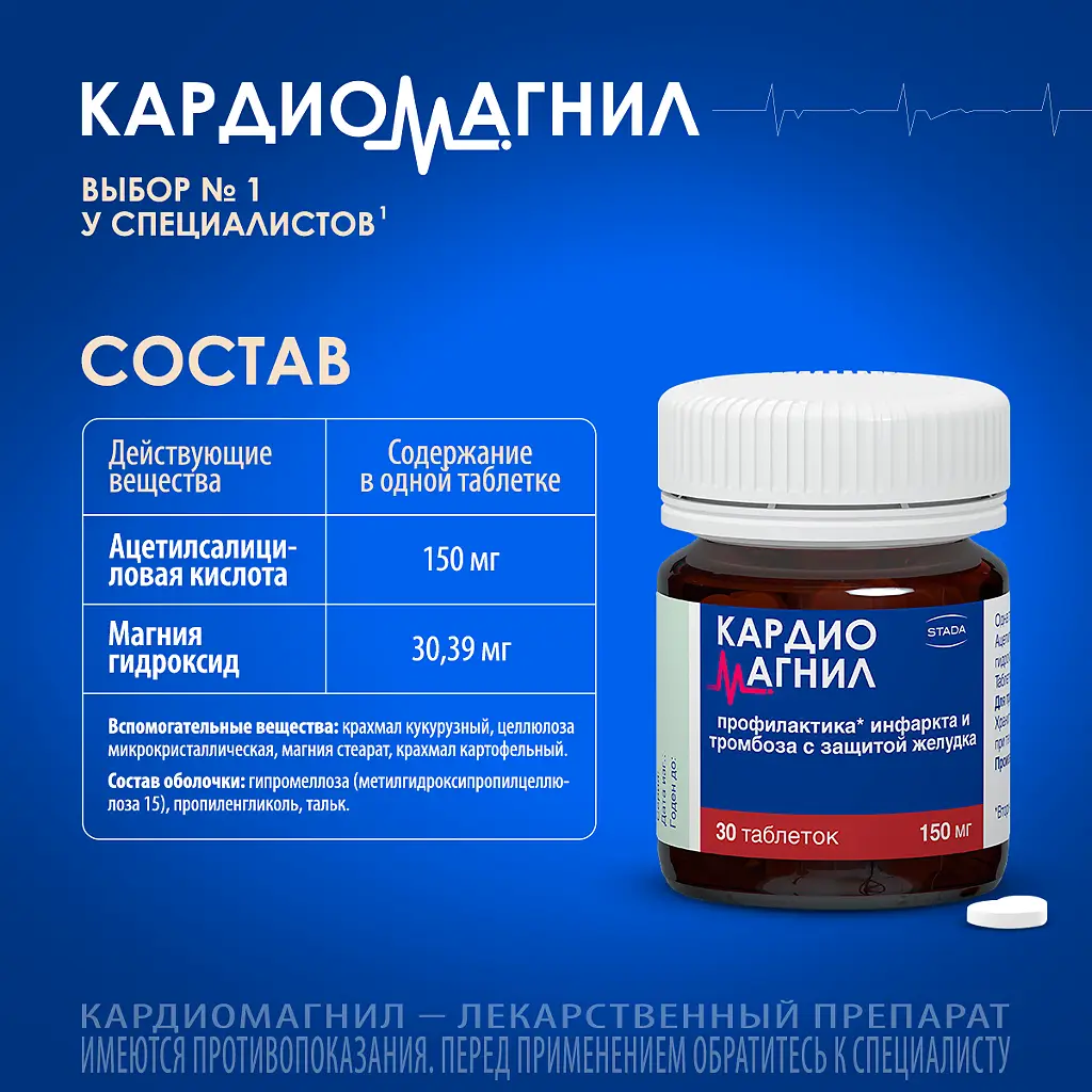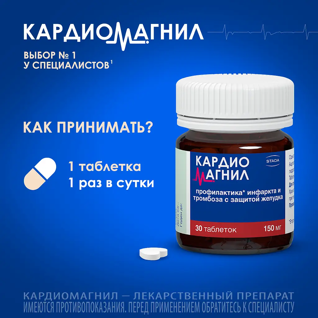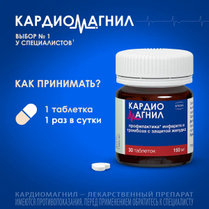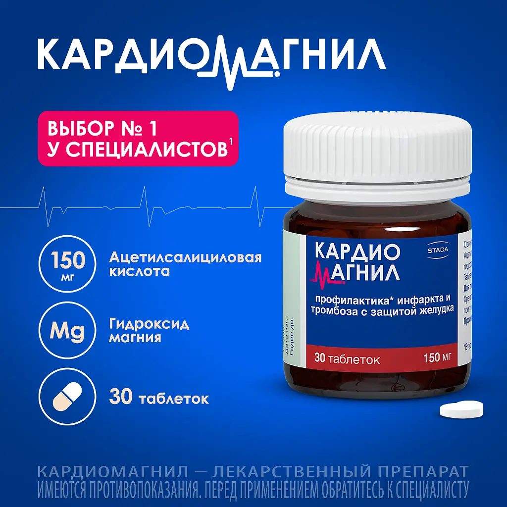 Кардиомагнил таблетки покрытые плёночной оболочкой 150мг+30,39мг №30