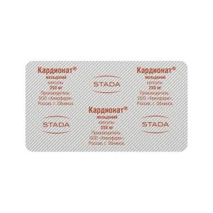 активное вещество: мельдония дигидрат (триметилгидразиния пропионата дигидрат) в пересчёте на дигидрат без адсорбированной влаги — 250 мг