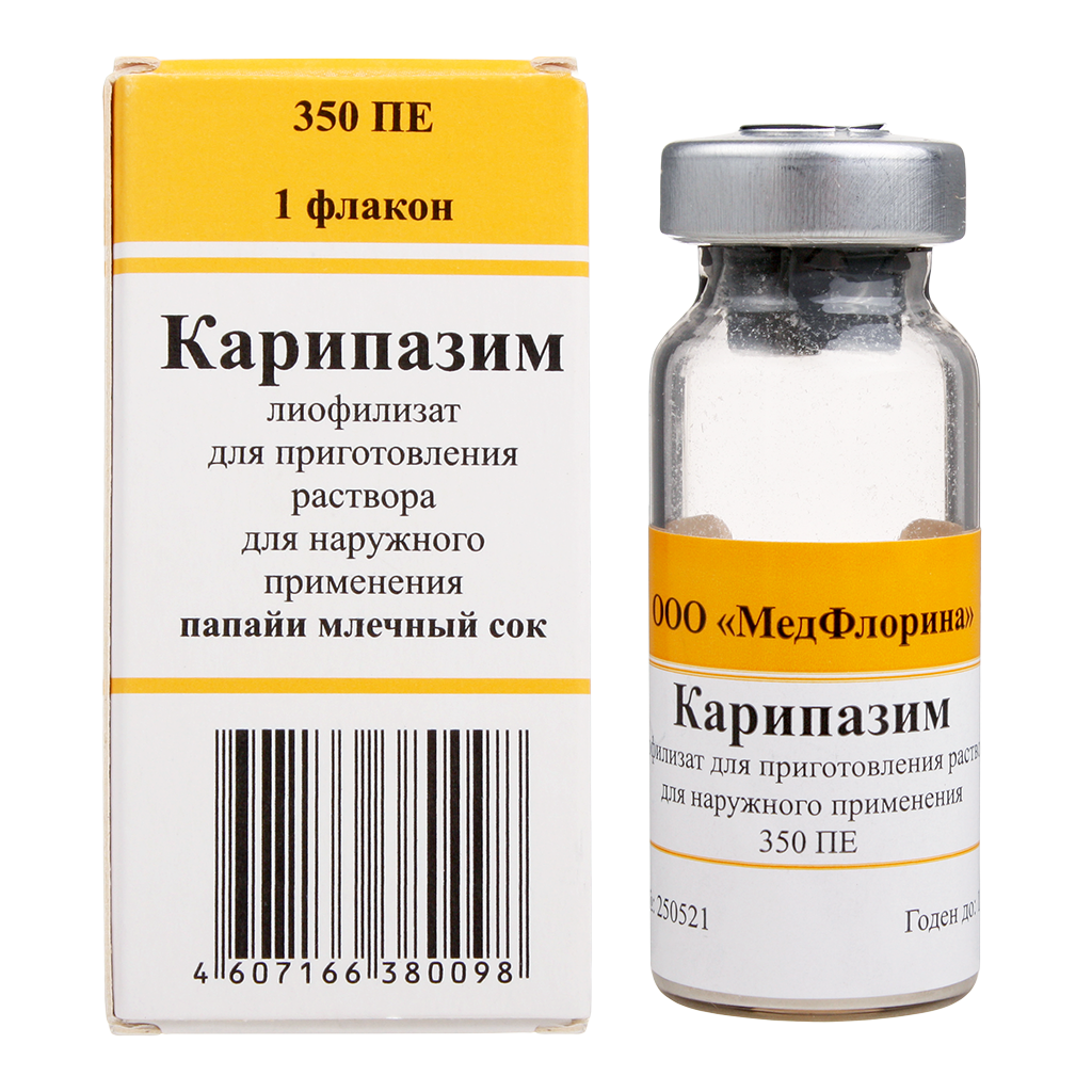 Карипазим лиофилизат для приготовления раствора для наружного применения 350ПЕ флаконы №1