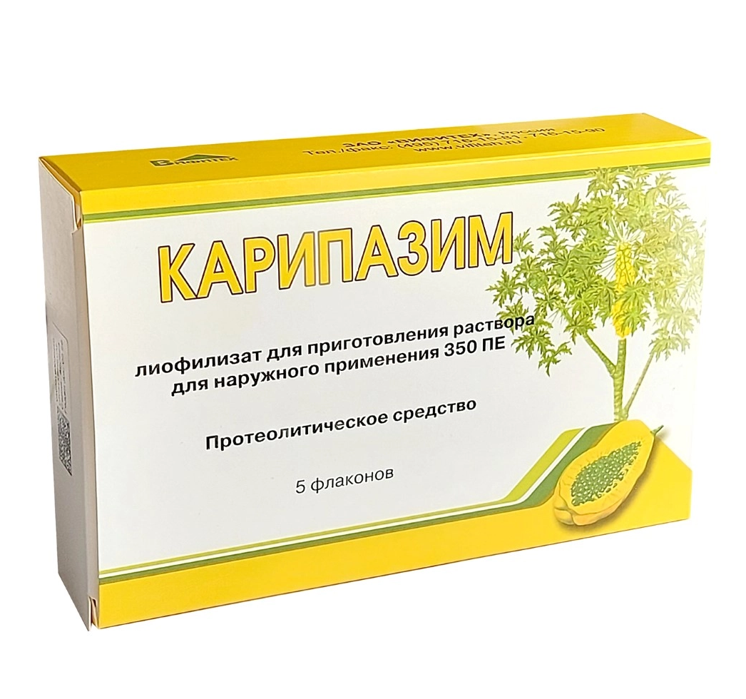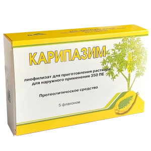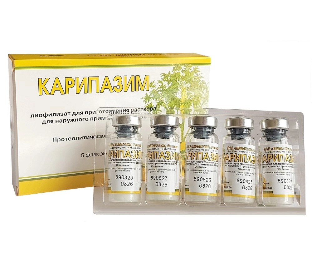 Карипазим лиофилизат для приготовления раствора для наружного применения 350ПЕ флаконы №5