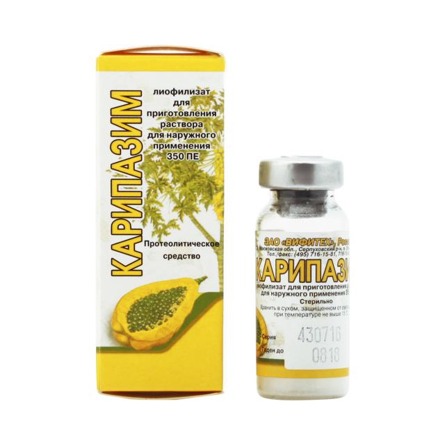 Карипазим лиофилизат для приготовления раствора для наружного применения 350ПЕ флаконы №1