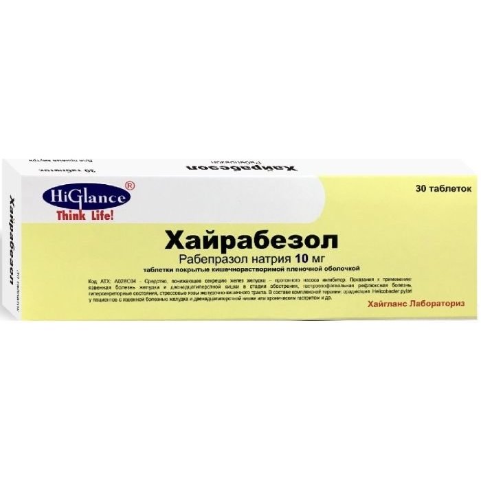 Ответ пациента на терапию рабепразолом не исключает наличие злокачественных новообразований в желудке. Таблетки препарата Хайрабезол нельзя разжёвывать или измельчать. Таблетки следует глотать целиком. Установлено, что ни время суток, ни приём пищи не влияют на активность рабепразола. В специальном исследовании у пациентов с лёгкими или умеренными нарушениями функции печени не было обнаружено значимого отличия частоты побочных эффектов рабепразола от таковой у подобранных по полу и возрасту здоровых лиц, но, несмотря на это, рекомендуется соблюдать осторожность при первом назначении пациентам с тяжёлыми нарушениями функции печени.