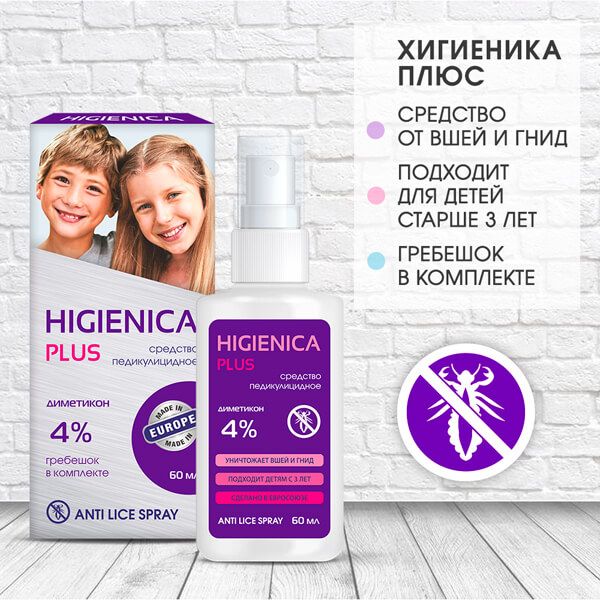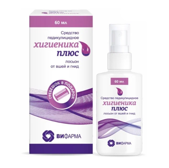 Сколько стоит Хигиеника плюс средство педикулицидное 4% лосьон от вшей и гнид флакон 60мл  - цена и отзывы
