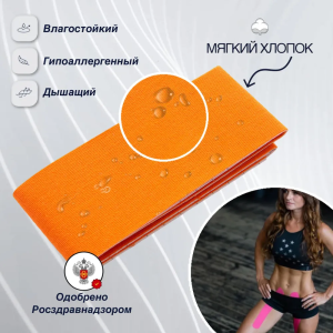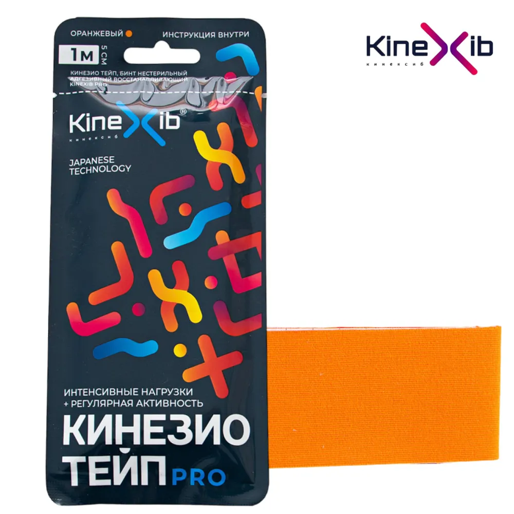 Кинексиб Кинезио тейп PRO бинт нестерильный адгезивный восстанавливающий оранжевый 1мх5см