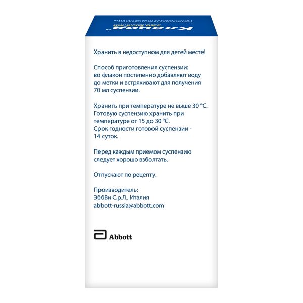 Срок годности готовой суспензии — 14 суток.