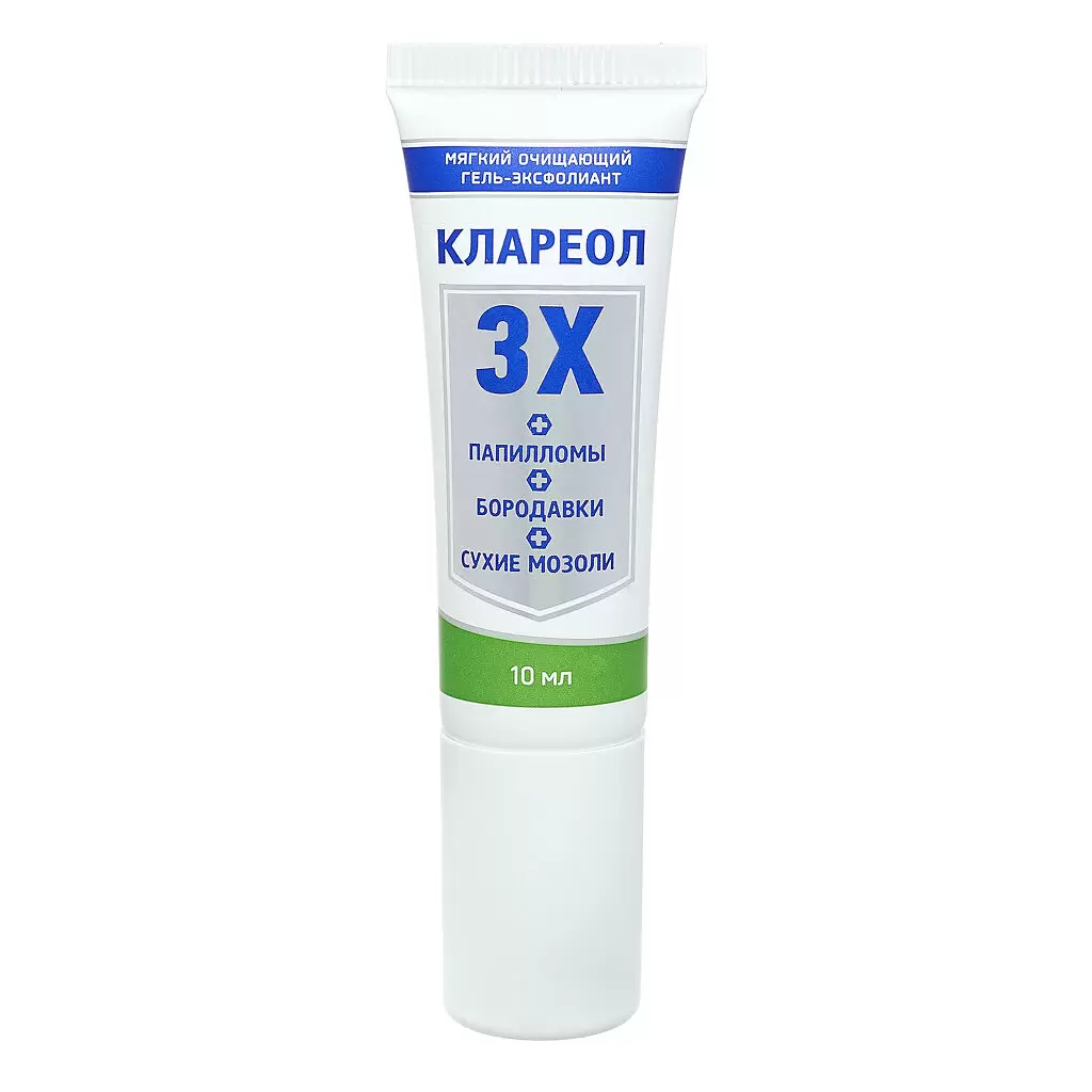 Мягкий очищающий гель-эксфолиант КЛАРЕОЛ косметической линии NNOSKIN – деликатное очищающее средство для активного отшелушивания кожи с избыточным ороговением при папилломах, бородавках, сухих мозолях и для удаления кутикул. Способствует очищению кожи от папиллом, бородавок и сухих мозолей. Оригинальная формула геля устраняет дефекты кожи практически бесследно, способствуя интенсивному очищению и восстановлению поврежденной кожи. Деликатное точечное действие косметического геля-эксфолианта Клареол направлено на отшелушивание ороговевших участков кожи в сочетании с противомикробным действием. Постепенно обрабатываемые участки кожи деликатно очищаются от косметических дефектов. Благодаря наличию д-пантенола (провитамин В5) в составе, гель-эксфолиант КЛАРЕОЛ способствует обновлению и восстановлению поверхностных слоев кожи.