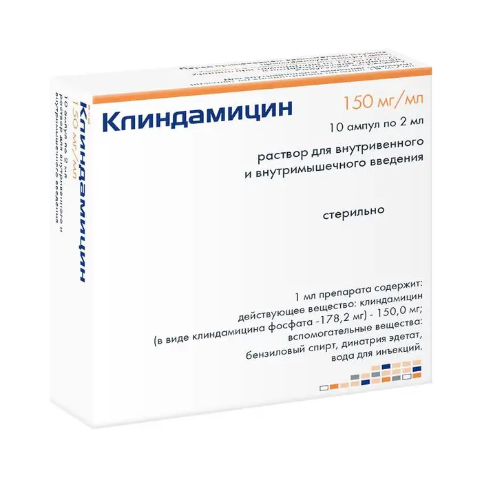 Клиндамицин раствор для внутривенного и внутримышечного введения 150мг/мл ампулы 2мл №10