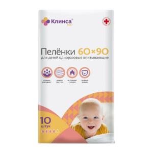 Клинса kids пеленки впитывающие одноразовые для детей 60х90см №10