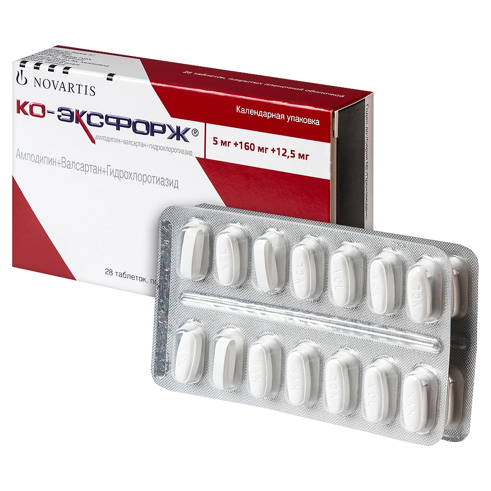 Ко-Эксфорж таблетки покрытые плёночной оболочкой 5мг+160мг+12.5мг №28