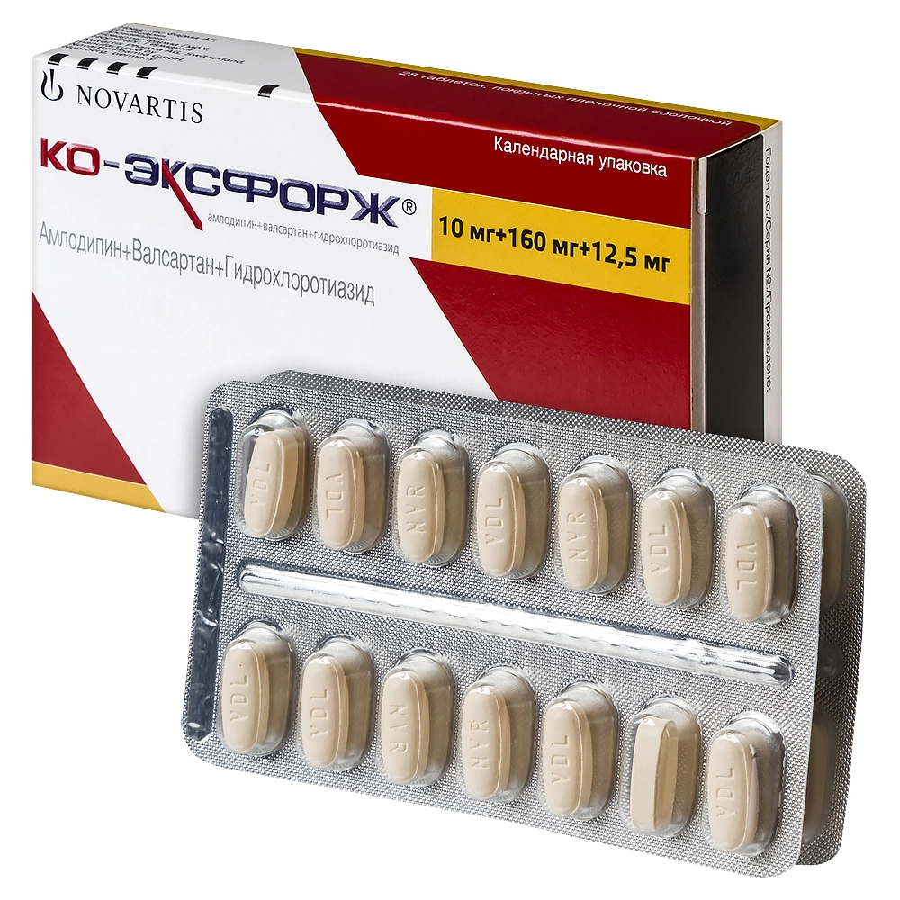 Ко-Эксфорж таблетки покрытые плёночной оболочкой 10мг+160мг+12.5мг №28