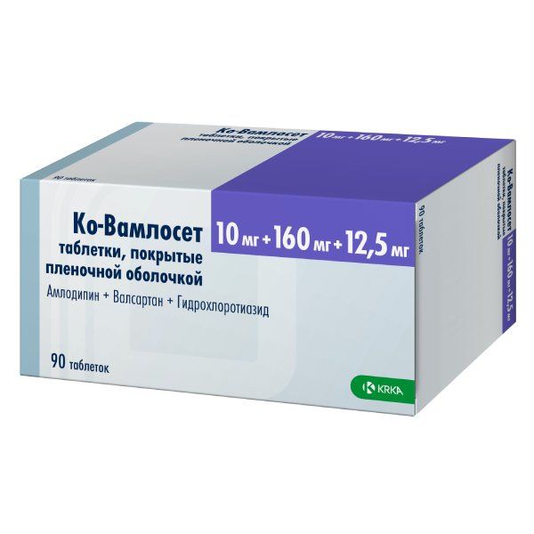 Ко-Вамлосет таблетки покрытые плёночной оболочкой 10мг+160мг+12,5мг №90