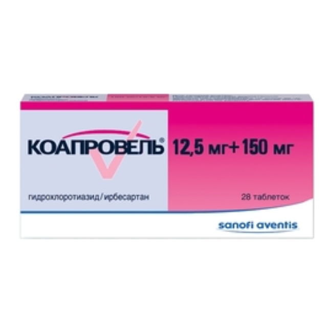 Коапровель® является комбинацией антагониста рецепторов ангиотензина II — ирбесартана и тиазидного диуретика — гидрохлоротиазида. Комбинация этих ингредиентов обладает аддитивным антигипертензивным эффектом, снижая артериальное давление в большей степени, чем каждый из них по отдельности.