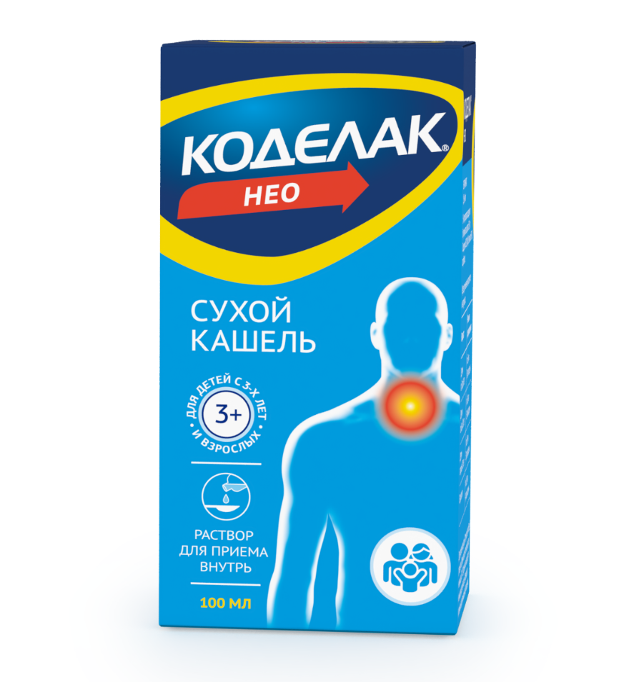 Бутамират, активное вещество препарата Коделак® Нео, является противокашлевым средством центрального действия. Не относится к алкалоидам опия ни химически, ни фармакологически. Не формирует зависимости или привыкания.