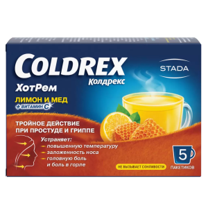 Колдрекс ХотРем порошок для приготовления раствора для приема внутрь лимонно-медовый пакетики 5г №5