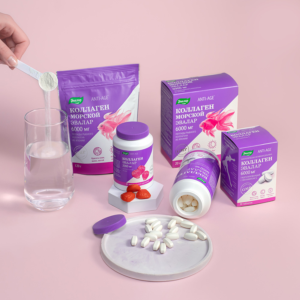Коллаген – незаменимый белок для красоты, главный белок молодости. Его неминуемый дефицит после 25 лет заметен сразу: кожа становится сухой и теряет свою эластичность, «плывет» и провисает овал лица, волосы тускнеют, сильнее секутся и выпадают, кости и суставы становятся хрупкими. Кроме того, нехватка коллагена может стать причиной заболеваний суставов и костей, увеличить риск переломов — главных факторов, ведущих к снижению активности и качества жизни. Учитывая, что в «белке молодости» нуждается не только кожа, но и весь организм, восполнять дефицит коллагена следует изнутри.