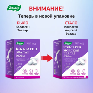 Коллаген морской Эвалар 6000мг таблетки покрытые оболочкой 1,2г №90