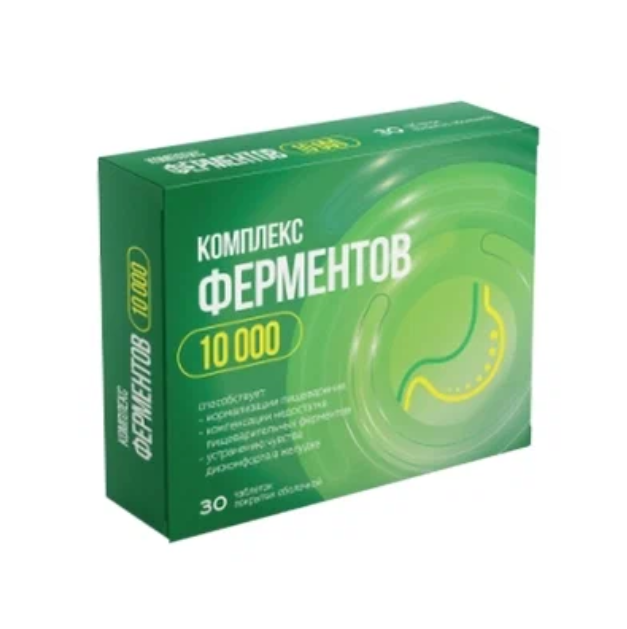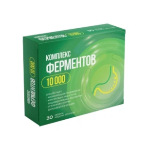 Комплекс пищеварительных ферментов 10000 таблетки покрытые оболочкой массой 560мг №30