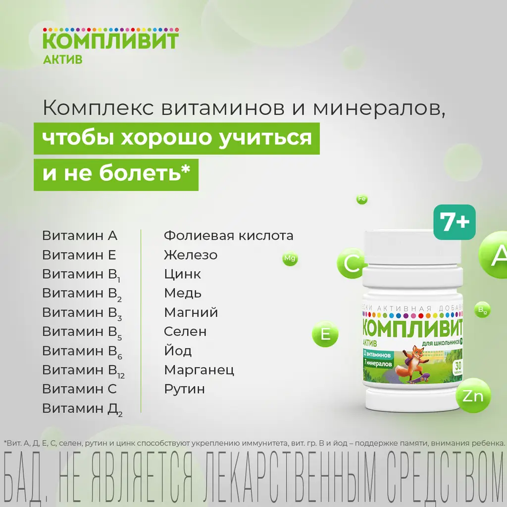 Компливит Актив для школьников 7+ таблетки покрытые пленочной оболочкой массой 693мг №30