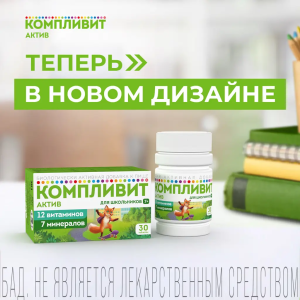 Действие БАД к пище «Компливит® Актив» обусловлено свойствами входящих в состав компонентов. Комплекс витаминов и минералов, являющихся важными факторами полноценного физического и интеллектуального развития ребенка, укрепления иммунитета, усиления адаптационных возможностей организма.
