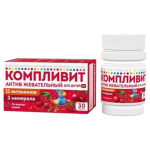 Компливит Актив жевательный для детей 3+ таблетки жевательные массой 1300г со вкусом вишни №30