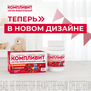 Действие биологически активной добавки "Компливит Актив жевательный" обусловлено свойствами входящих в состав компонентов. Комплекс витаминов и минералов, являющихся важными факторами полноценного физического и интеллектуального развития ребенка, укрепления иммунитета, усиления адаптационных возможностей организма. Сбалансирован с учетом рекомендуемых уровней потребления микронутриентов.