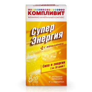 Компливит Супер Энергия с женьшенем таблетки шипучие №10
