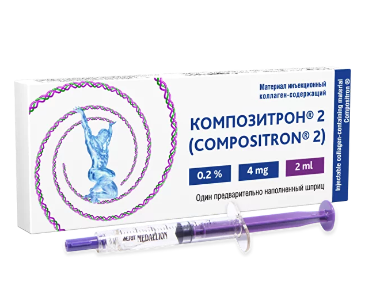 Композитрон® — это медицинское изделие однократного применения, представляющее собой инъекционный материал в предварительно наполненных шприцах в нескольких вариантах исполнения на основе водного раствора гидролизованного коллагена в фосфатном буфере. Не содержит латекса и фталатов.