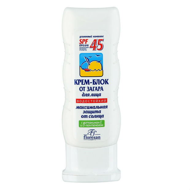 Крем-блок от загара 45 с высокоэффективным комплексом UVA/UVB фильтров эффективно защищает кожу от возникновения солнечных ожогов, особенно в первые дни пребывания на солнце. Входящие в состав крема витамин Е и экстракт облепихи питают и увлажняют кожу. Д-пантенол эффективно восстанавливает защитный барьер кожи, подвергшейся инсоляции. Водостойкий.