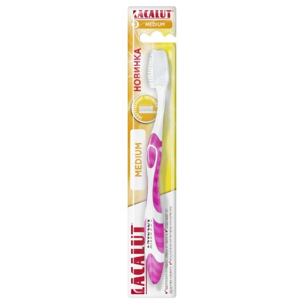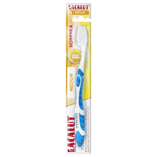 Зубная щетка Lacalut medium идеально подходит людям, стремящимся сохранить природную белизну зубов. Закругленные щетинки средней жесткости тщательно удаляют бактериальный зубной налет с поверхности эмали, препятствуя возникновению и развитию кариеса. Нескользящая эргономичная ручка с подушечкой для большого пальца позволяет регулировать нагрузку на эмаль и десны и обеспечивает комфорт во время чистки зубов.