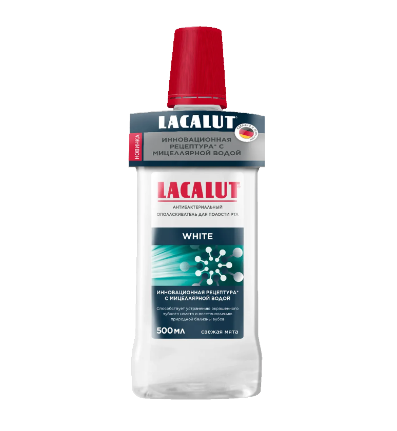 Антибактериальный ополаскиватель для полости рта Lacalut white снижает образование зубного налета и дополнительно очищает поверхность эмали благодаря мицеллам. Пирофосфат осветляет и поддерживает природную белизну зубов. Фторид укрепляет эмаль и защищает ее от кариеса. Антисептик и соединение цинка комплексно воздействуют на слизистую оболочку полости рта, предотвращая ее воспаление. Масло эвкалипта, тимол и ментол дополнительно освежают дыхание.