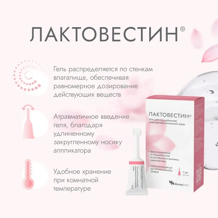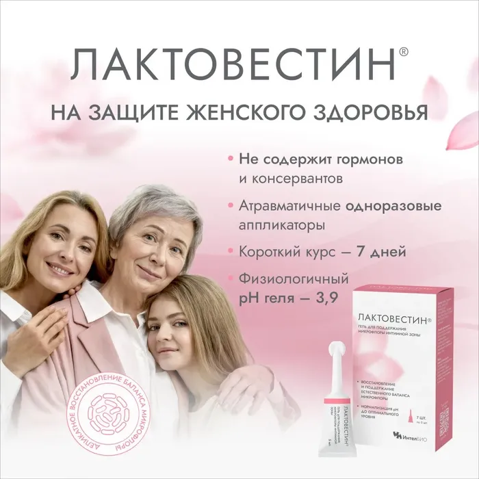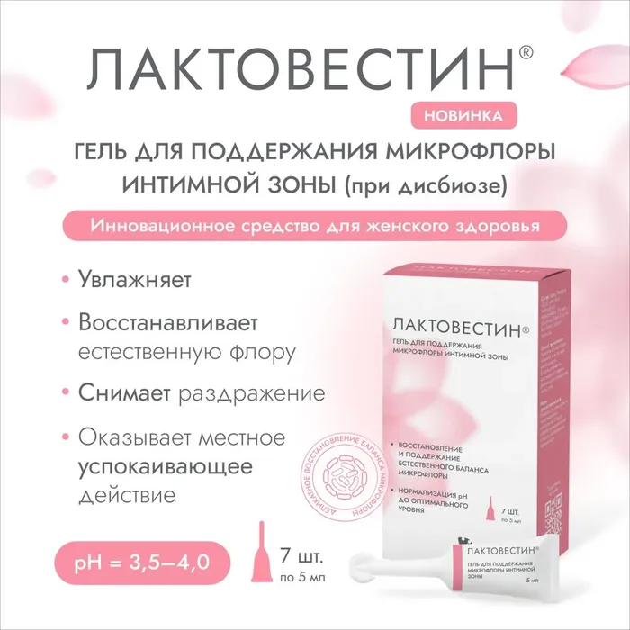 Нарушение естественного баланса микробиома кожи интимной зоны связано с уменьшением количества лактобактерий на фоне повышения уровня рН кожи. ЛАКТОВЕСТИН® способствует нормализации рН до оптимального уровня, обеспечивая восстановление и поддержание микрофлоры интимной зоны.
