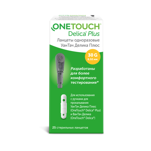 Для использования вместе с ручкой для прокалывания OneTouch® Delica® Plus. Предназначены для безопасного и простого получения капли капиллярной крови из кончика пальца для измерения уровня глюкозы в крови с помощью глюкометра.