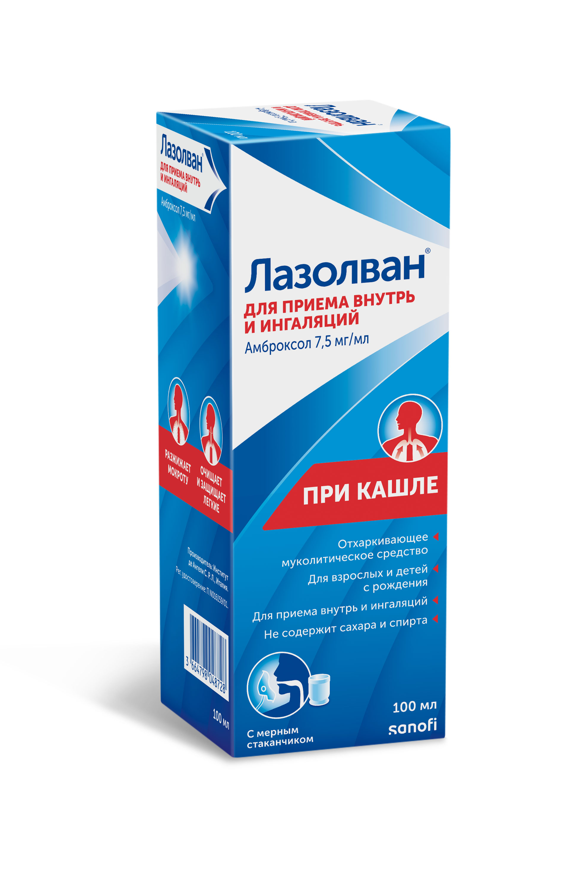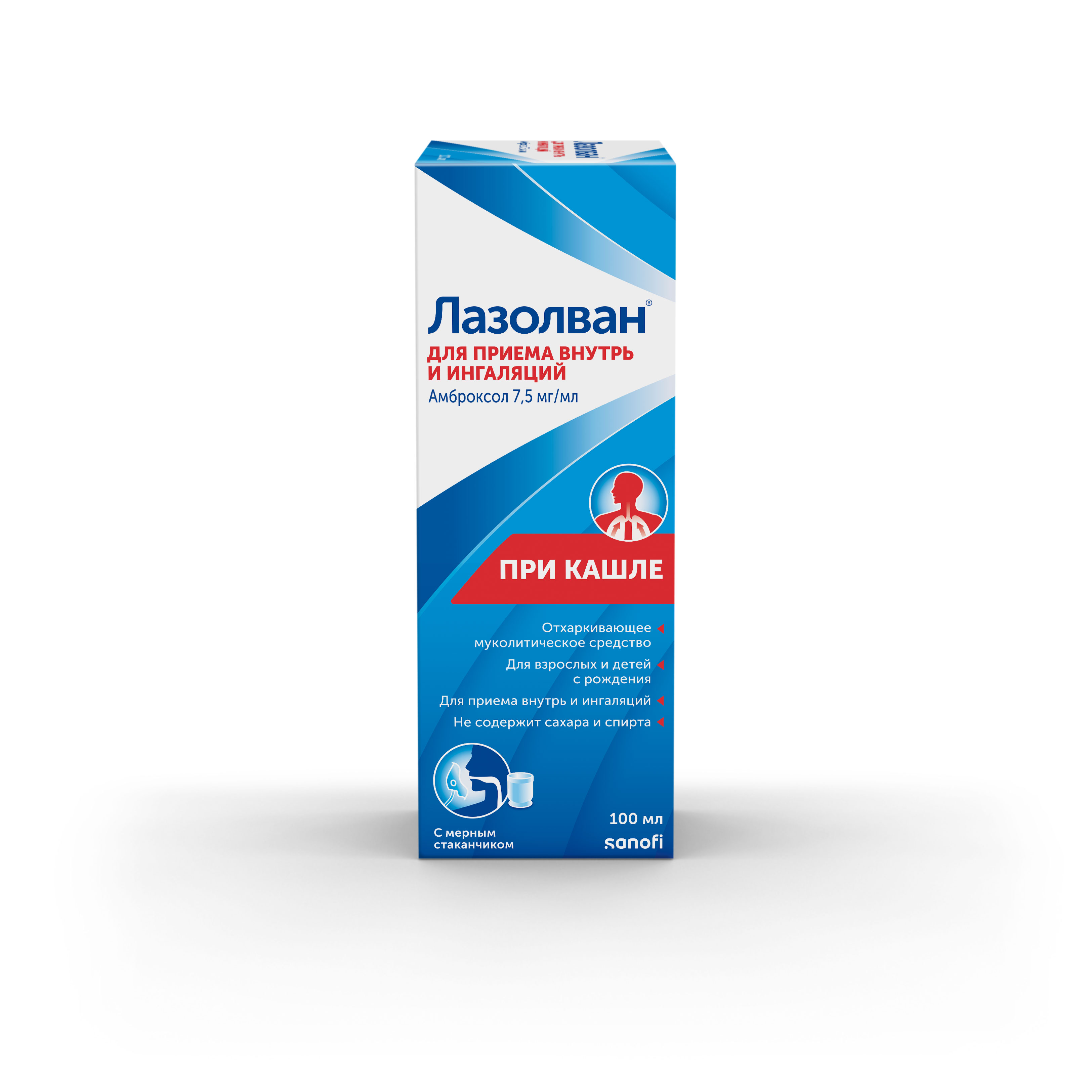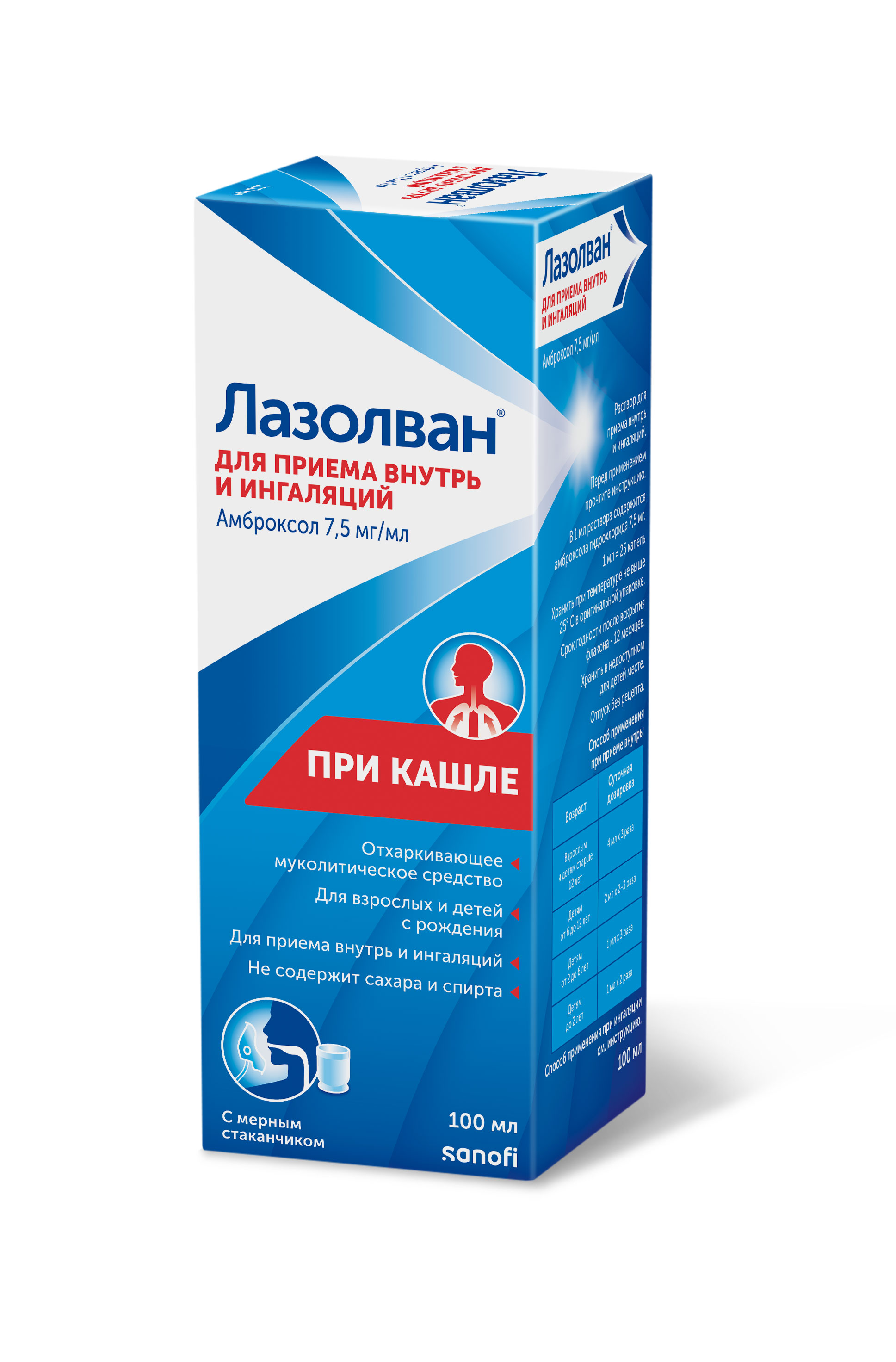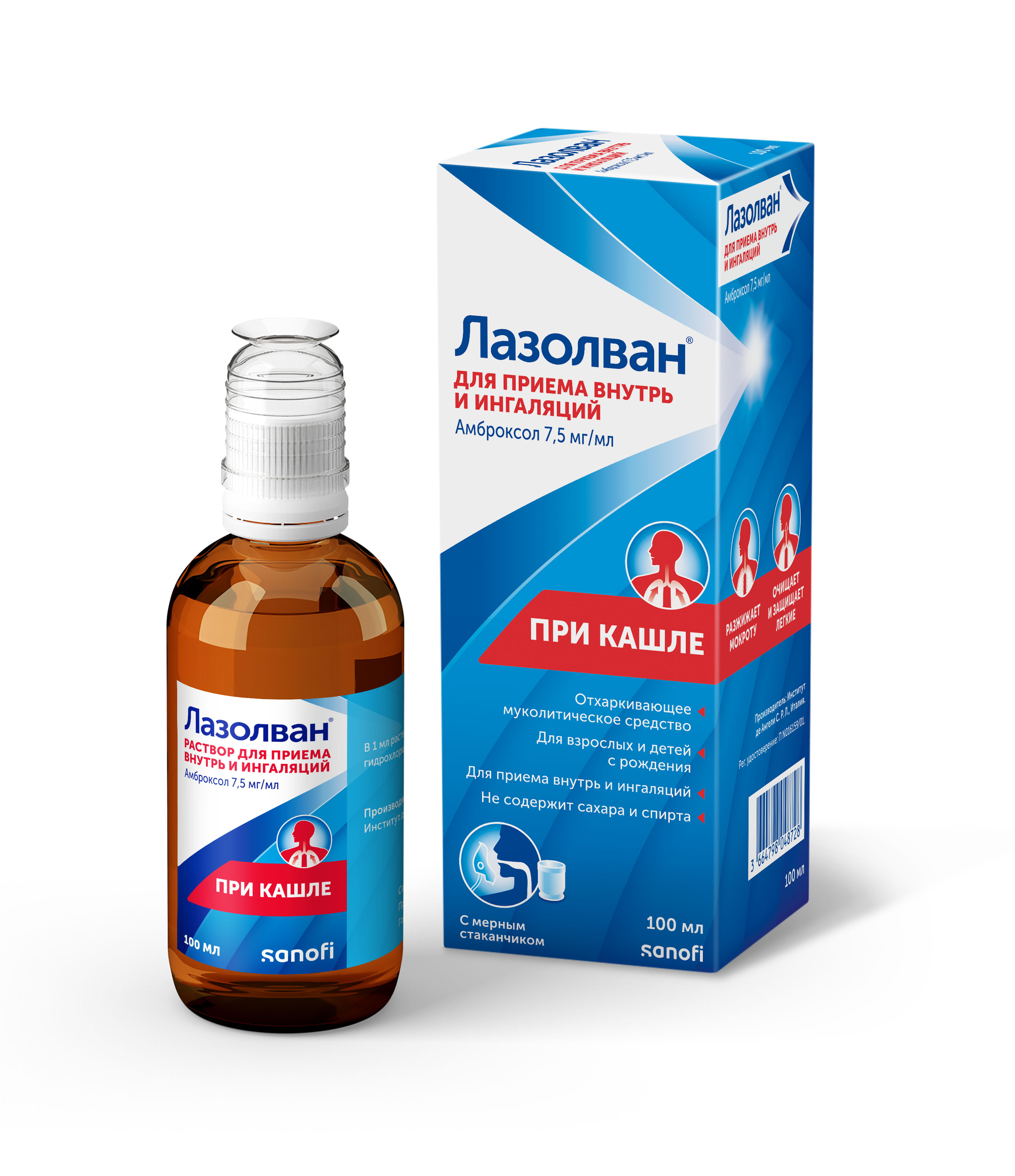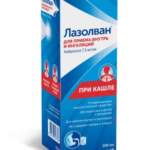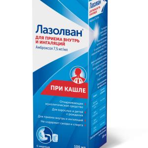 Лазолван раствор для приема внутрь и ингаляций 7,5мг/мл флакон 100мл