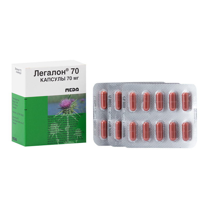 Активное вещество: расторопши пятнистой плодов экстракт сухой (36-44:1) — 86,5-93,35 мг, эквивалентно 70 мг силимарина (ДНФГ), эквивалентно 54,1 мг силимарина (ВЭЖХ/Герм. Ф.) в расчёте на силибинин.