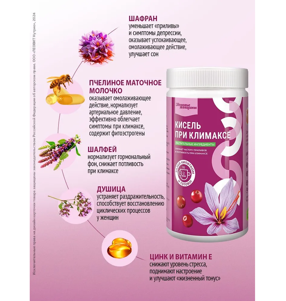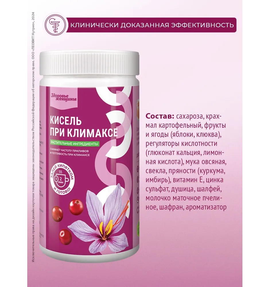 Кисель «При климаксе» - это специализированный пищевой продукт диетического профилактического питания при климактерическом синдроме: