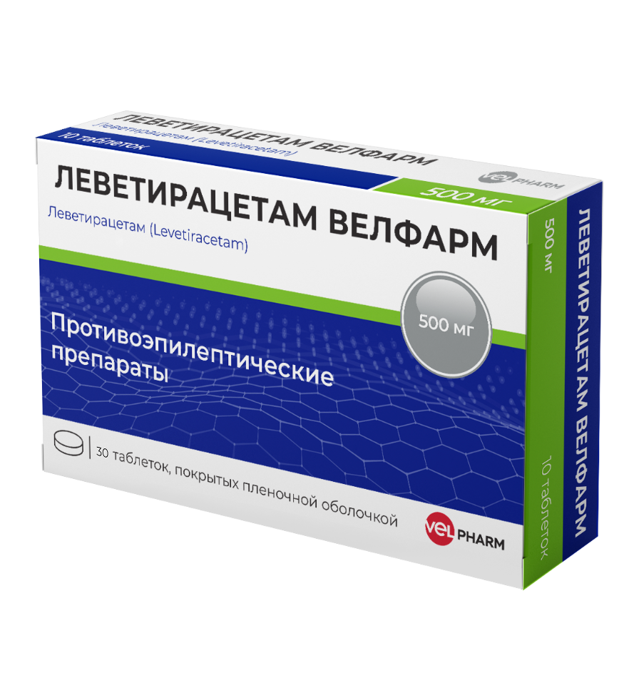 ЛЕВЕТИРАЦЕТАМ ВЕЛФАРМ, 500 мг, таблетки, покрытые плёночной оболочкой