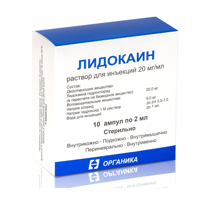 Лидокаин раствор для инъекций 20 мг/мл ампулы 2мл №10 /Органика/