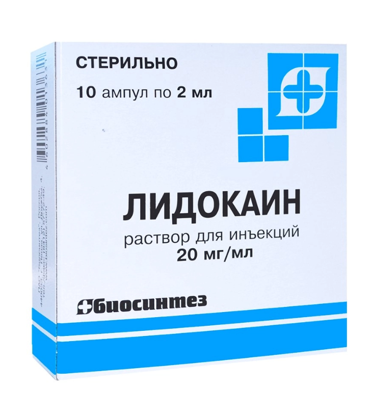 Лидокаин раствор для инъекций 20мг/мл ампулы 2мл №10