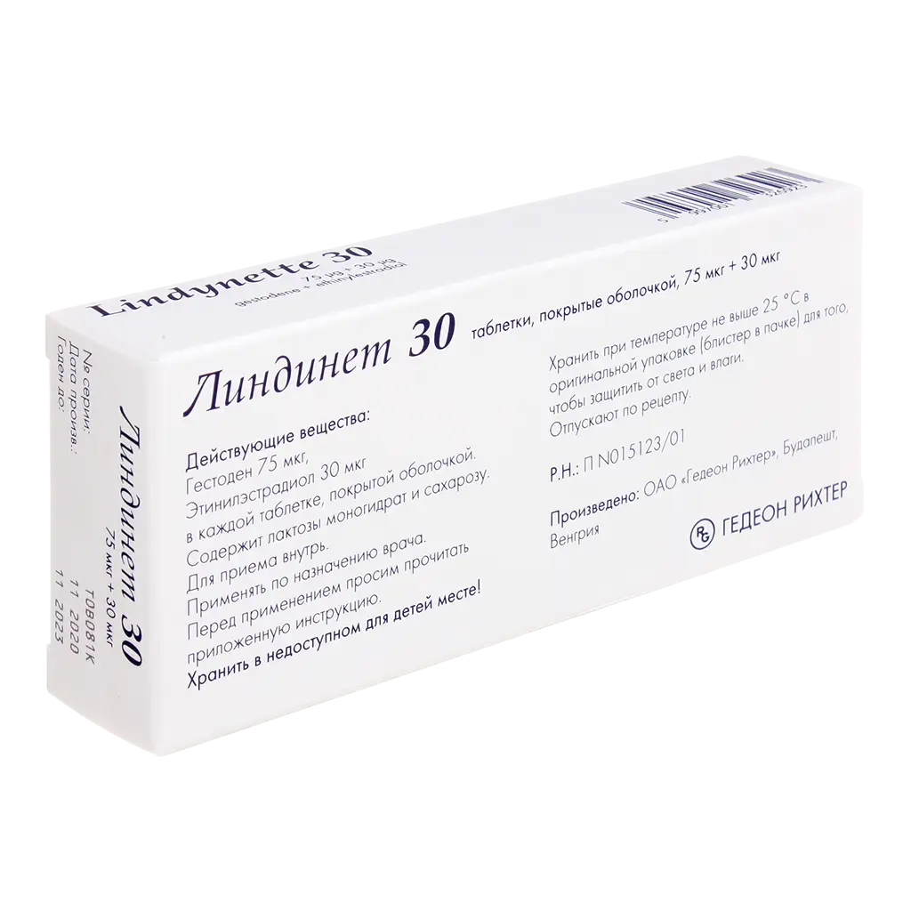 Линдинет 30 таблетки покрытые оболочкой 75мкг+30мкг №21