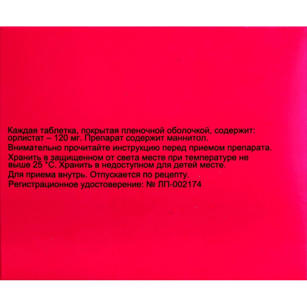 Активное вещество: орлистат — 120,0 мг