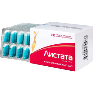 Препарат Листата эффективен в плане длительного контроля массы тела (снижение массы тела и её поддержание, предотвращение повторной прибавки массы тела). Лечение препаратом Листата приводит к улучшению профиля факторов риска и заболеваний, сопутствующих ожирению, включая гиперхолестеринемию, сахарный диабет 2 типа, нарушение толерантности к глюкозе, гиперинсулинемию, артериальную гипертензию, и к уменьшению количества висцерального жира.