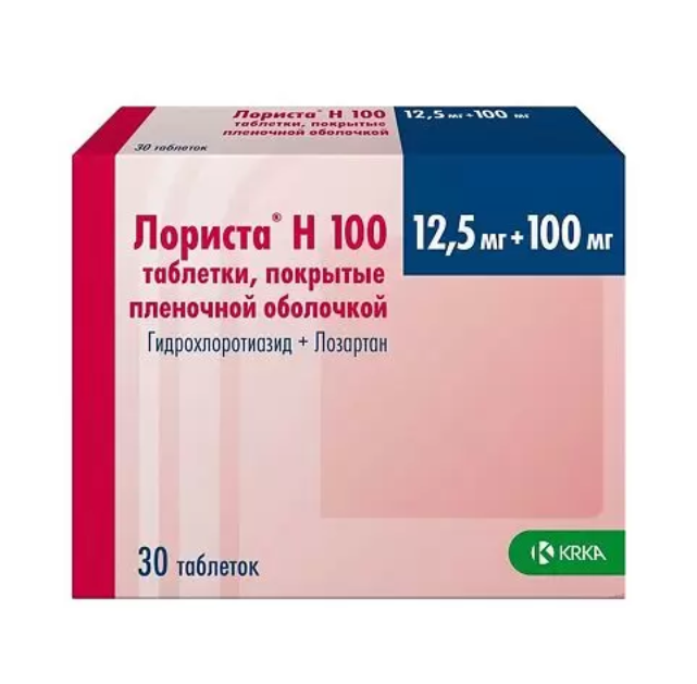 Лориста® Н 100 — комбинированный препарат, в состав которого входят лозартан и гидрохлоротиазид, которые оказывают аддитивное антигипертензивное действие, снижая артериальное давления (АД) в большей степени, чем каждый из компонентов в отдельности.