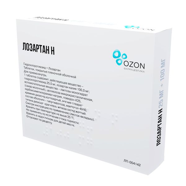 Лозартан Н таблетки покрытые пленочной оболочкой 25мг+100мг №30