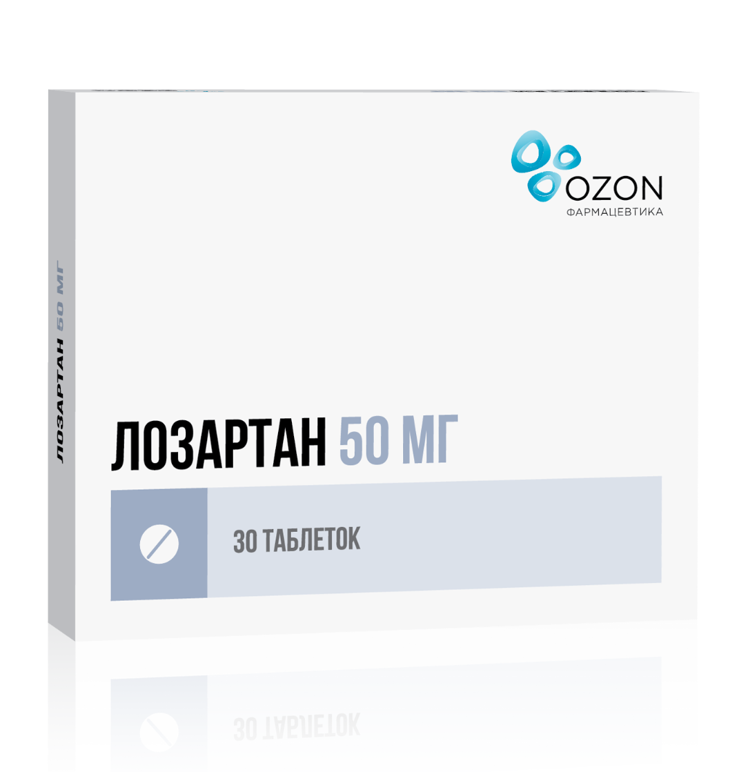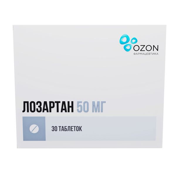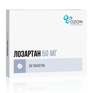 Действующее вещество: лозартан калия — 50,000 мг.