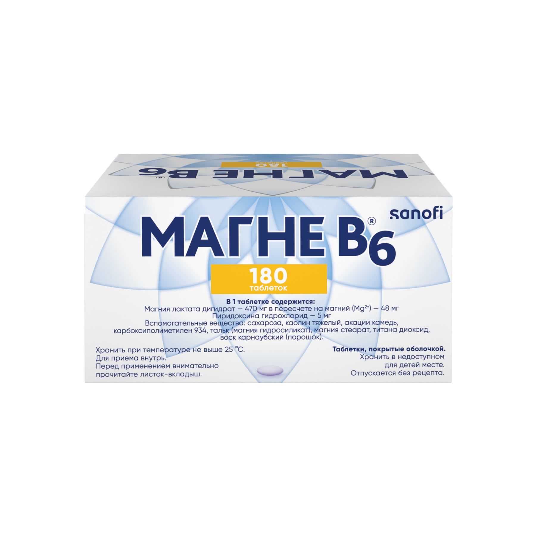 Магне B6 таблетки покрытые плёночной оболочкой 48мг+5мг №180