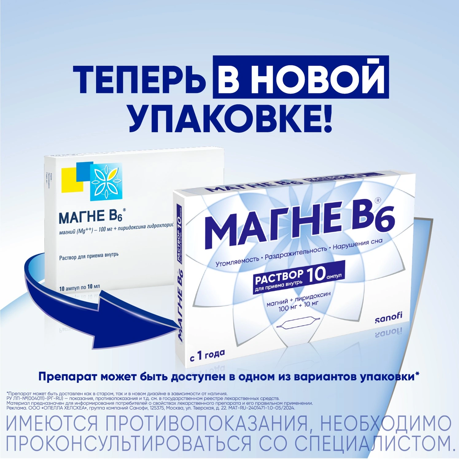 Магне В6 раствор для приёма внутрь ампулы 10мл №10