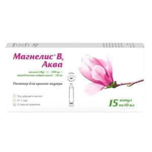 Магнелис В6 Аква раствор для приёма внутрь 100мг+10мг ампулы 10мл №15