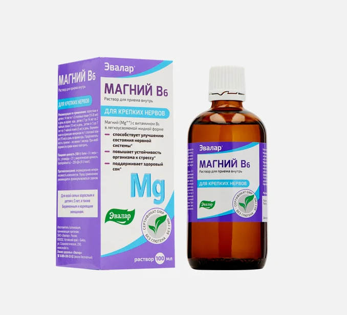 Дефицит магния и витаминов группы В может привести к нарушению обмена веществ, поэтому человек должен ежедневно получать с пищей достаточное количество таких соединений. А если привычный рацион не удовлетворяет суточные потребности в таких веществах, можно использовать специальные пищевые добавки. Например – раствор «Магний В6» от компании «Эвалар». Он создан на основе легкоусвояемых форм магния в виде его лактата и глюконата, дополненных витамином В6 (в виде пиридоксина гидрохлорида). Благодаря этому средство способствует: