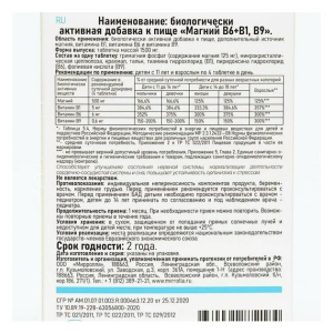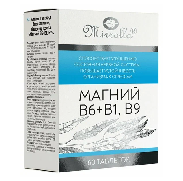 МИРРОЛЛА МАГНИЙ В6+В1 + В9 - биологически активная добавка к пище, способствующая улучшению состояния нервной системы, нормализации деятельности сердечно-сосудистой системы и сна, повышению устойчивости организма к стрессам.